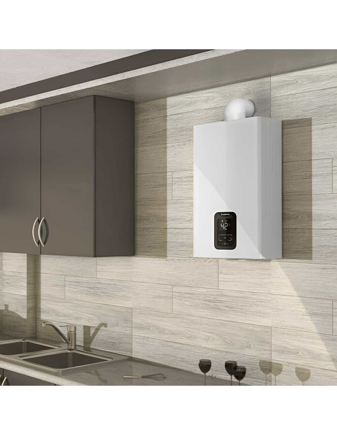 Funciona sin llama piloto, encendiéndose solo cuando hay demanda de agua, lo que contribuye a un mayor ahorro de gas.