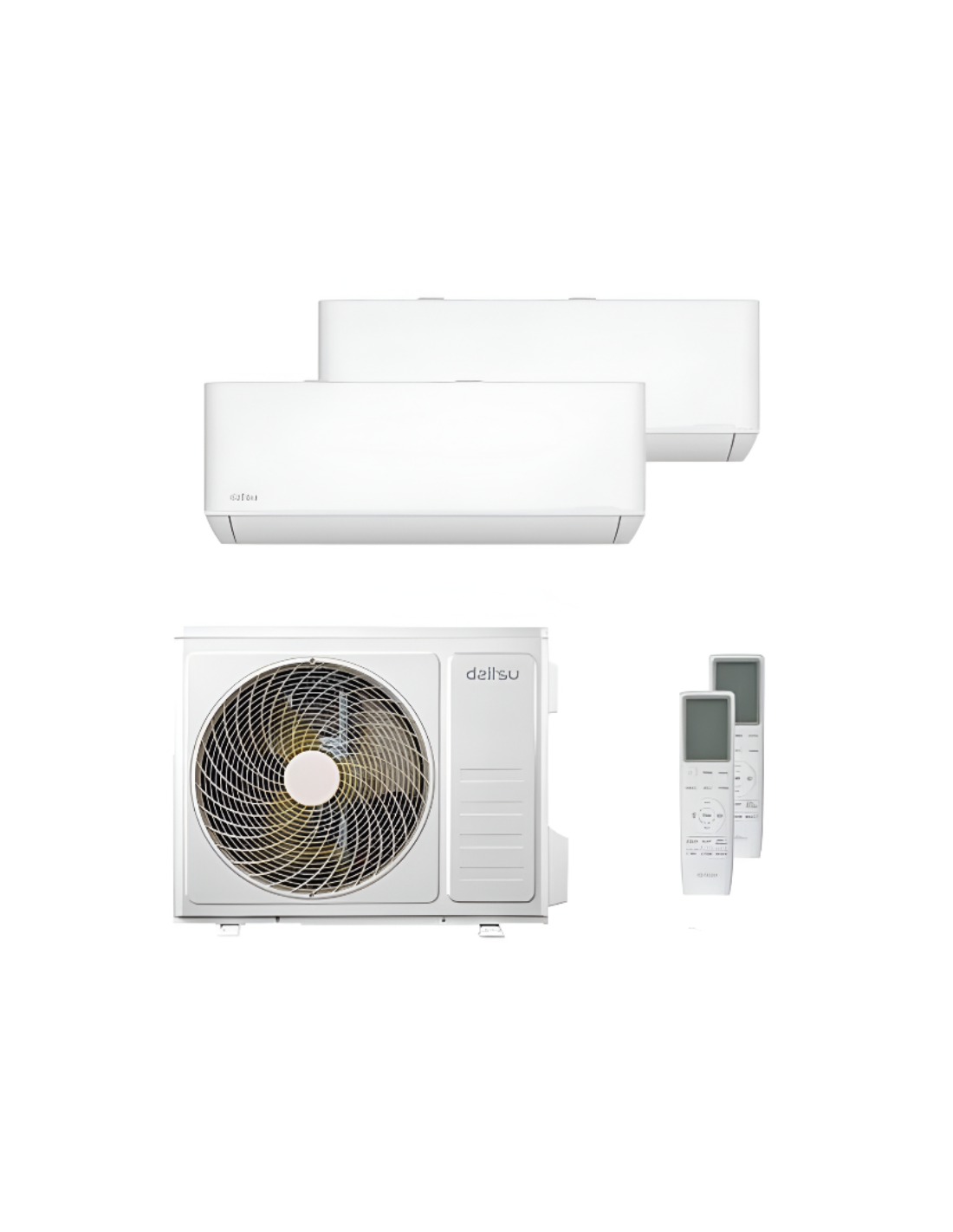 The Daitsu 2x1 multi-split DSM-12U2KDT-4 UE18 is a climate control system that allows you to connect two indoor units to a single outdoor unit, making it an ideal option for cooling two independent rooms with one outdoor compressor. This design optimizes space and reduces visual impact on facades, as well as simplifying installation.