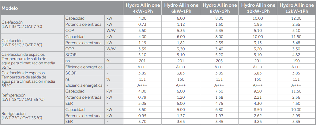 Caractéristiques Haier Hydro Tout-en-un 6 kW