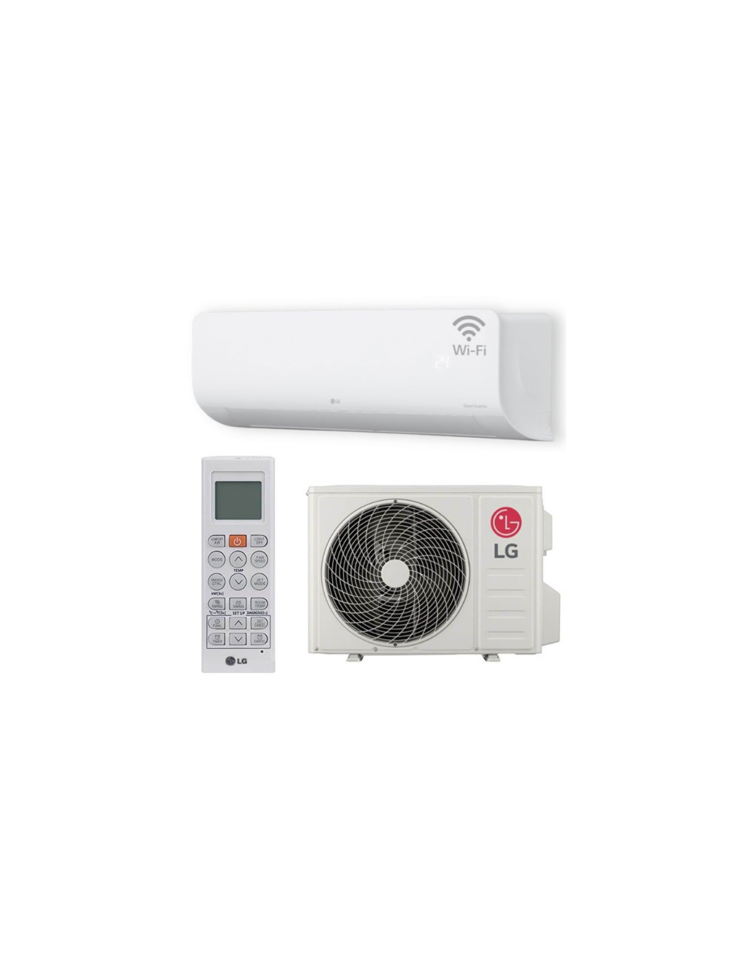 Le système intègre la connectivité LG ThinQ WiFi, qui permet de contrôler le climatiseur depuis un smartphone ou une tablette via l'application officielle de LG. Depuis l'application, il est possible d'allumer ou d'éteindre l'appareil, d'ajuster la température, de configurer des minuteries et de surveiller la consommation énergétique depuis n'importe où.