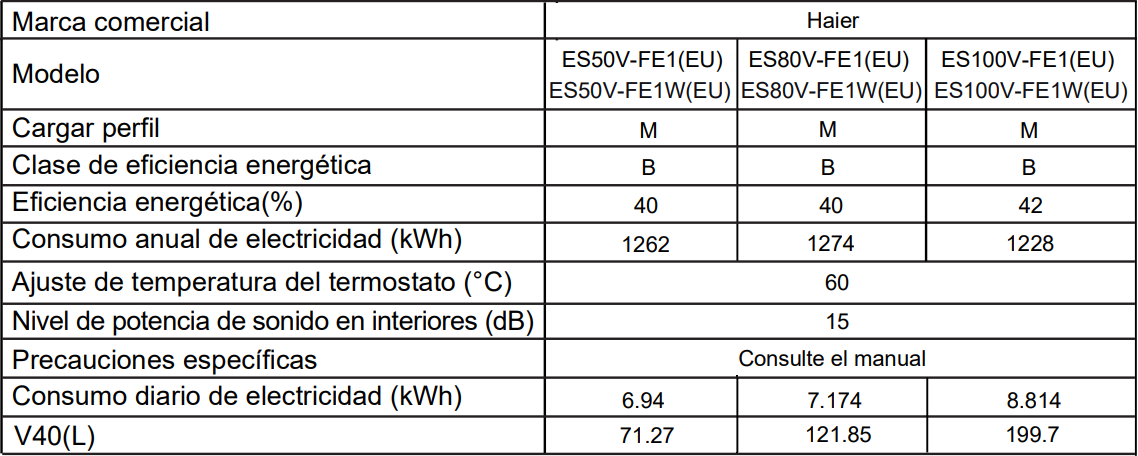 El Haier ES100V‑FE1W 100 L WiFi se entrega completamente embalado y listo para su instalación por un técnico autorizado. Incluye manual de usuario y documentación oficial del fabricante.