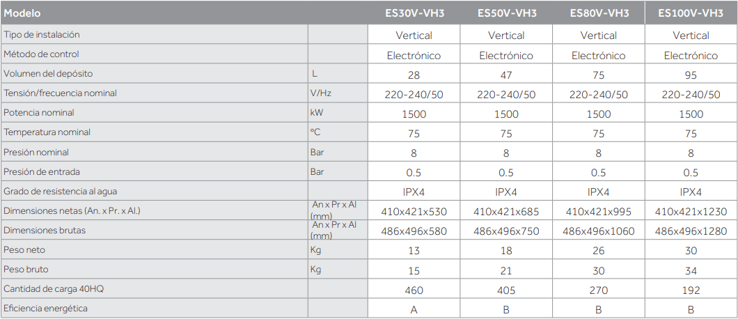Con un diseño vertical redondo, este termo eléctrico utiliza materiales anticorrosión para una mejor durabilidad del producto. Este termo eléctrico vertical redondo, que está disponible en 2 tamaños diferentes (47 L y 75 L), puede satisfacer una amplia gama de necesidades y puede calentar el agua hasta los 55°C.