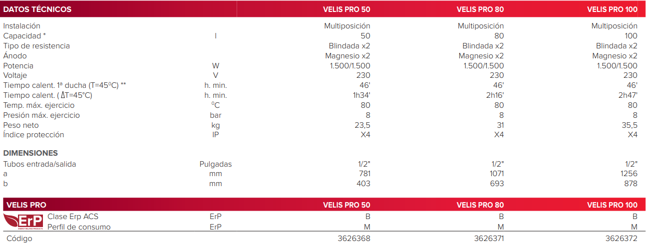 El Termo eléctrico VELIS PRO 100 de Ariston es una solución moderna y eficiente para la producción de agua caliente sanitaria, combinando diseño ultraplano, tecnología avanzada y un excelente rendimiento energético.